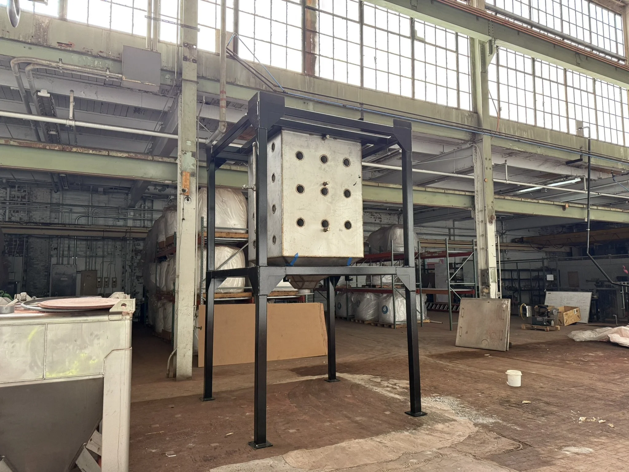 A chemical manufacturing client required a purpose-built solution for cooling thermally processed media from 500°F to safe handling temperatures. The previous method; passive cooling in 55-gallon drums took 4–6 days per batch, exposed the media to atmospheric contamination that degraded the chemical reaction, and introduced safety and product loss risk during manual drum-to-bag transfer. No off-the-shelf equipment existed for this application.